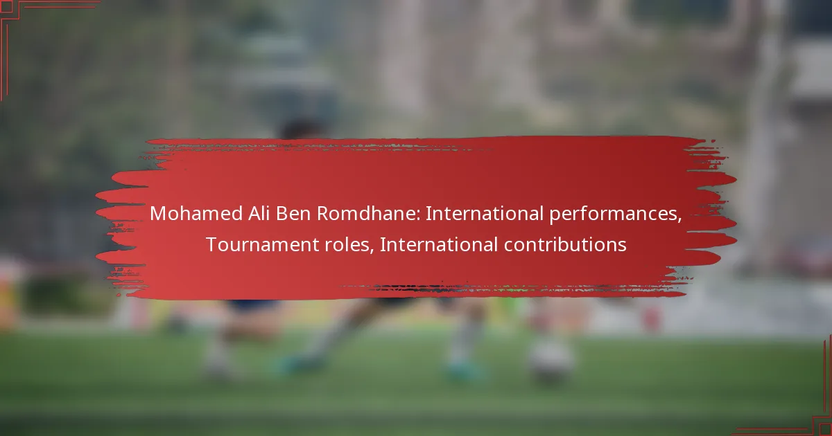 Mohamed Ali Ben Romdhane has made significant contributions to his national team through his leadership, performance in key matches, and influence on team dynamics. His role in major tournaments has solidified his status as a key player, earning him various accolades and establishing a long-term legacy within the sport.